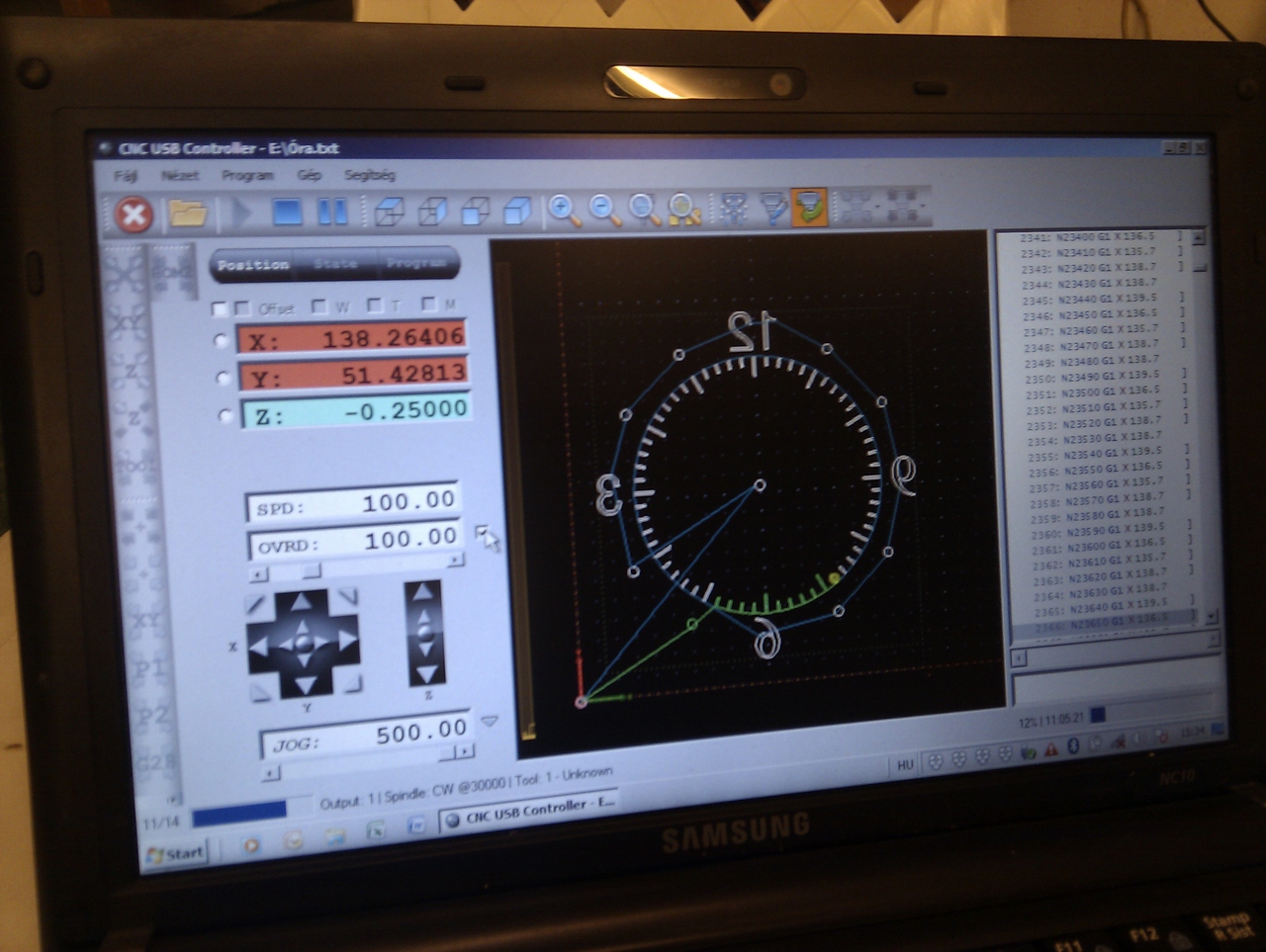 Szia! Most, ma próbáltam elöször, mert kiváncsi voltam a 0.1 mm hegyű 30 fokos gravírtűre. A fordulatszám 10.000 környékén vagy talán kicsit felette lehetett. A mosógép motorom tekeri a főorsót. Az előtolás 50 és 100 mm/perc között játszadoztam vele. Sajnos az üvegben voltak huplik amire életemben nem gondoltam volna. Azért voltak benne azok a nem belemart részek. Hülyét is csinált belőlem , mert vagy 6 szor visszaküldtem emiatt Home pozicióba, mondom biztos letört a tű hegye. De nem az volt a bibi.