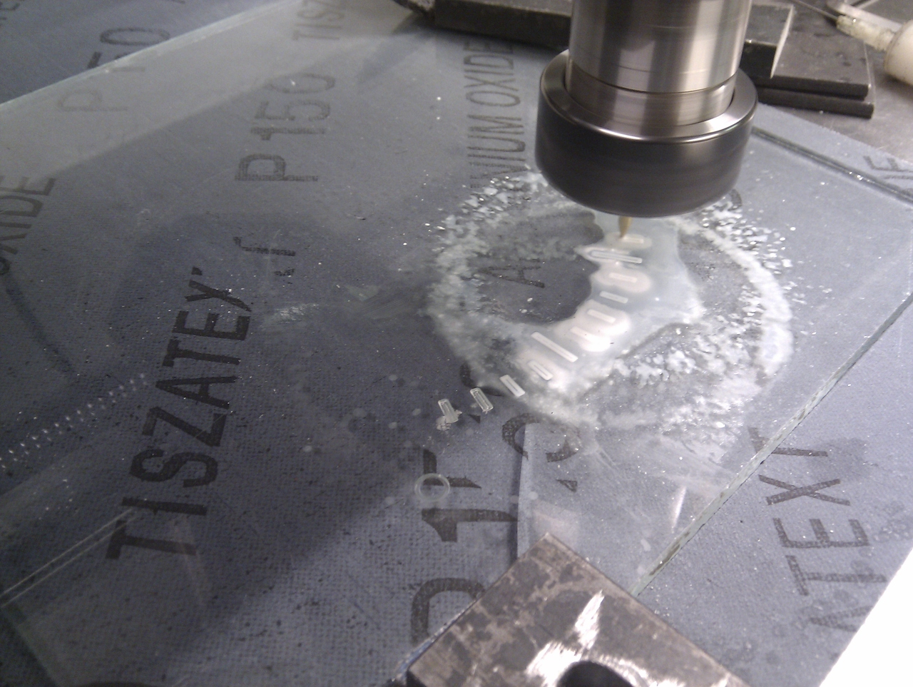 Készül egy üveg próba óra. A marás mélysége 0.5 mm. Kiváncsi leszek, hogy oldalról megvilágítva milyen is lesz.