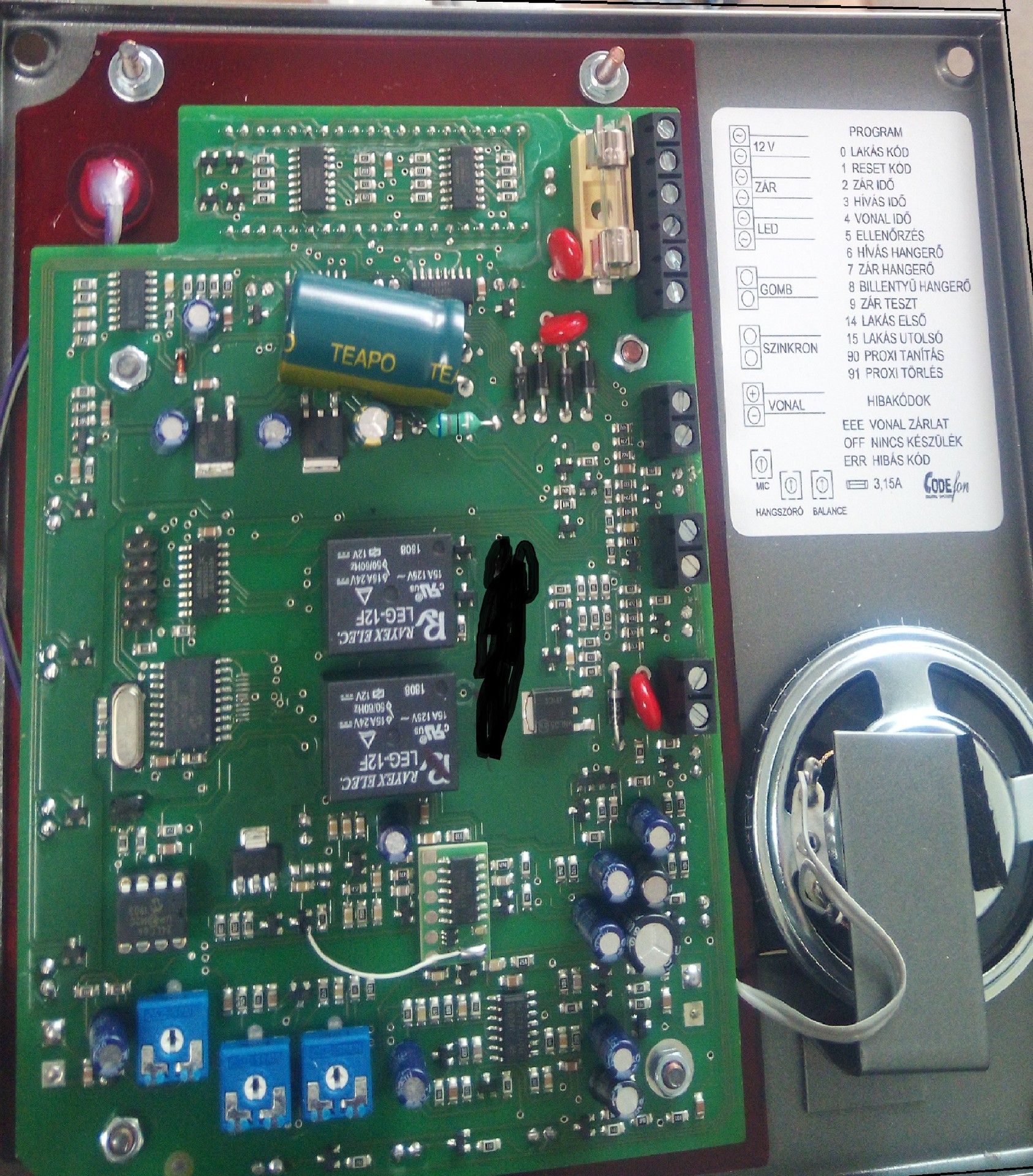 szeretnék segítséget kérni, a csatolt képen látható lakáskészülék csengetési hangerejét szeretném halkítani. Amit eddig próbáltam, hogy egy 10 µF-os kondenzátort kötöttem a kagylóban közvetlenül a hangszóró elé, így nagyon halk lett (de csörgött), viszont felvétel után semmi hang, lenti központi egység pedig azt írta hogy OFF. Ezután a kondit kiszedtem, most működik eredeti állapotában.