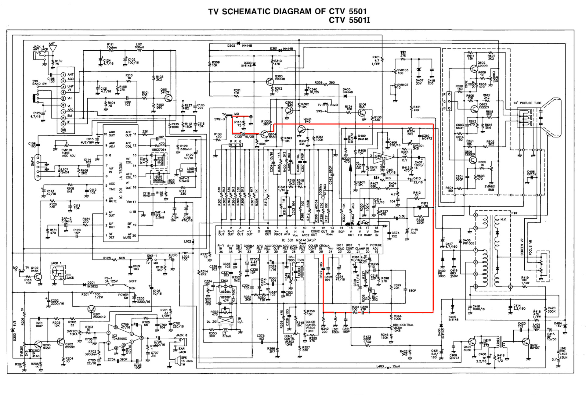 Egy kis CRT TV-re szeretnék a kompozit videojel mellé S-Video bemenetet készíteni. A készülék kapcsolási rajza megvan. El is kezdtem rajta bejelölni merre megy a kompozit jel, még elér az IC-ig ami aztán dolgozik vele. Lásd csatolt képen a piros sáv. Addig jutottam, hogy az IC 25. lába a chroma, az a szín bemenet. A lumában, azaz a fényértékben nem vagyok biztos. Ránézésre a 20.-as azaz Y IN lehet az? Szóval az a kérdésem, szerintetek melyik lesz a fényesség? Illetve mit javasoltok, hova kössem be az s-videó két szálát (chroma, luma)? Esetleg kellhet-e még valami passzív alkatrész, mielőtt közvetlen beforrasztom a kábelt? Köszi előre is! |