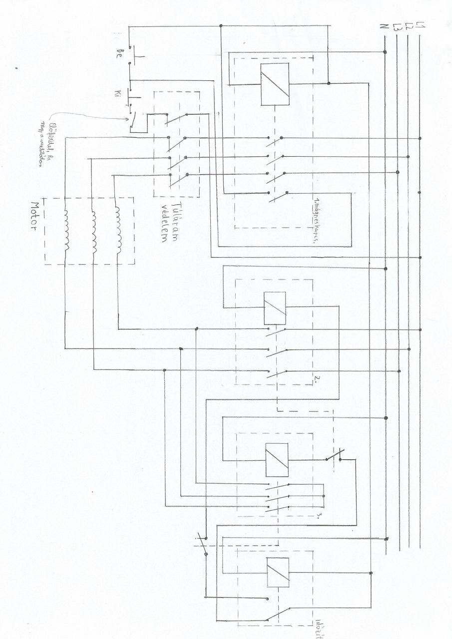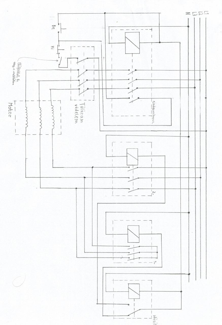 Munkahelyen ment tönkre az egyik gépnél a kapcsolószekrény. Egy ventilátort és a munkagépet kapcsolja. A lényeg, hogy a gépet csak akkor lehet bekapcsolni, ha megy a ventilátor, a gép pedig csillag-deltában induljon. Jelenleg maga a kapcsolószekrény átláthatatlan bonyolultságú, ezért is szeretném leegyszerűsíteni, de mégis működjön a lágyindítás benne. Csináltam hozzá egy kapcsolási rajzot amiben nem vagyok biztos, hogy működhet ezért is kérdezem meg, mit kéne rajta változtatni, ha kell. Ne ott tegyek valamit tönkre. Valamiért el van forgatva a kép. A hozzászólás módosítva: Ápr 22, 2017