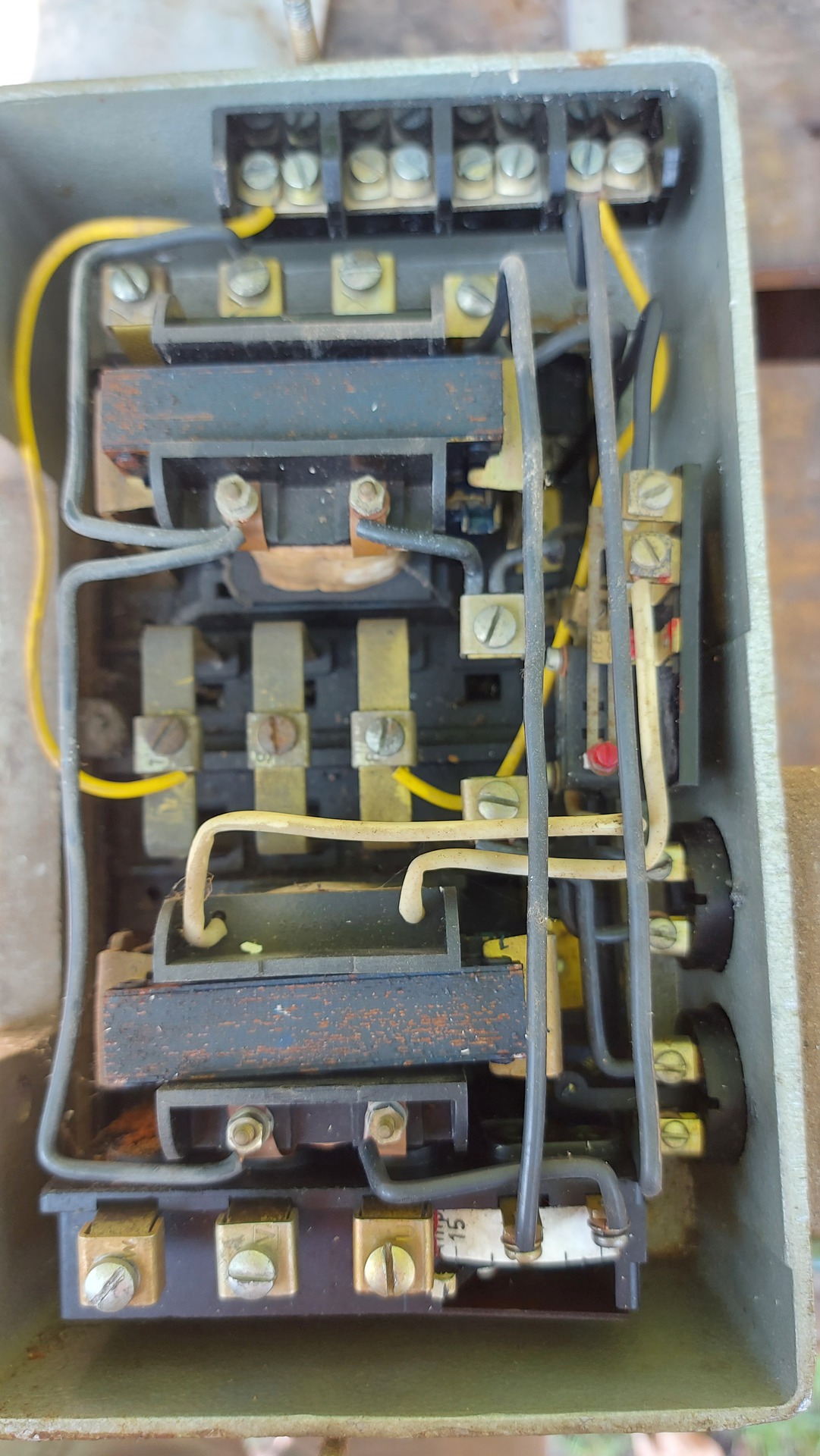 Igen volt más fogyasztó is, de próbáltam úgy is hogy mindent ki húztam. A megszakító b-s. A motor egy Brikettaló csigát hajtana, és üresjáratban indul, és váltana. Csillagban indul és mikor vált deltába akkor nyomja le nyomja a megszakítót.