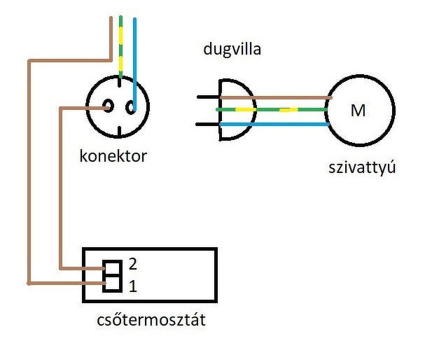 Tegnap este miután haza jöttem a munkából ahol a mágnes szelep kék színű vezetéke illetve a szoba termosztát vezérlő kék színű vezetéke találkozik arra köttem a szivattyút így a kazánnal együtt indul és áll le. Csak így vhogy úgy érzem hogy így hűvösebb a ház ahhoz képest mikor ment a cső termosztát..