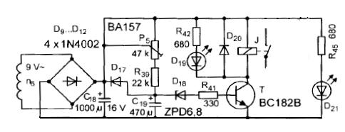 Ezt próbáltam, ez jó. Ha nem húzza meg a relét egyedül a BC182, akkor köss 2-t darlingtonba, és akkor megy..