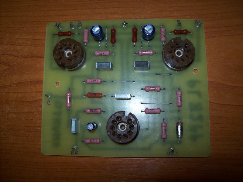 Megcsináltam 6N1P-re is a PP-t. Megemeltem 325 V-ig a segédrácsot, ha felkötöm 680 ohmmal a tápra, akkor 2*25 W fölött van a vége. 20-as áttételre kötve a kimenőt, hálózattól függően hajszál híján 30 W (pont mint a nálam lévő gyári 057-eseken. Ezek 8 ohmon 2,8 K-s Raa val mennek, kimenői szerintem nincsenek áttekerve. Kicsit más jellegű, de nagyon szép hangon szólnak, mérve kicsit rosszabb az enyémnél, mélyben is, magasban is, hangra nem merném állítani. A "szisszenve pusszantása" mintha jobb lenne közepes hangerőn, mint az enyémnek, de ez még fülelést igényel, mert rádión hallgattam csak (swiss jazz és swiss classic műholdról strong 6010-el, nem szg.-ről)). Már nem akarok vele többet foglalkozni, szerintem nagyon szépen szól, a kisebb segédráccsal olyan SE felé hajló. A macseknak kifejezetten tetszik a dizájn.