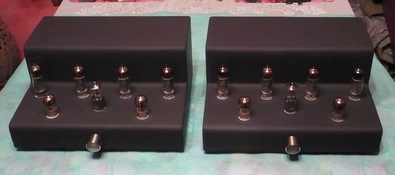Nem volt nehéz összehozni a második példányt már tegnap az elsőnél szerzett szerelési tapasztalatok felhasználásával könnyen ment . Az egész projekt olyan 10 nap alatt zajlott , de ebben benne van az anyag beszerzéstől kezdve a fleta 6 darab trafó elkészítése , a dobozok festése /amire egy hetet kellett várni míg sorra kerül / Ezért köszönet a trafó készítő mesternek a precíz és a gyors munkáért , az anyagbeszerzőnek meg szintén aki pillanatok alatt megvásárolta és postázta a sok - sok cuccost a két csöveshez meg aztán a Mr aki intézte az összes dolgot . ezért külön köszöntet mindenért /volt egy pár délutánom amikor nem unatkoztam !/ El84pp több kép