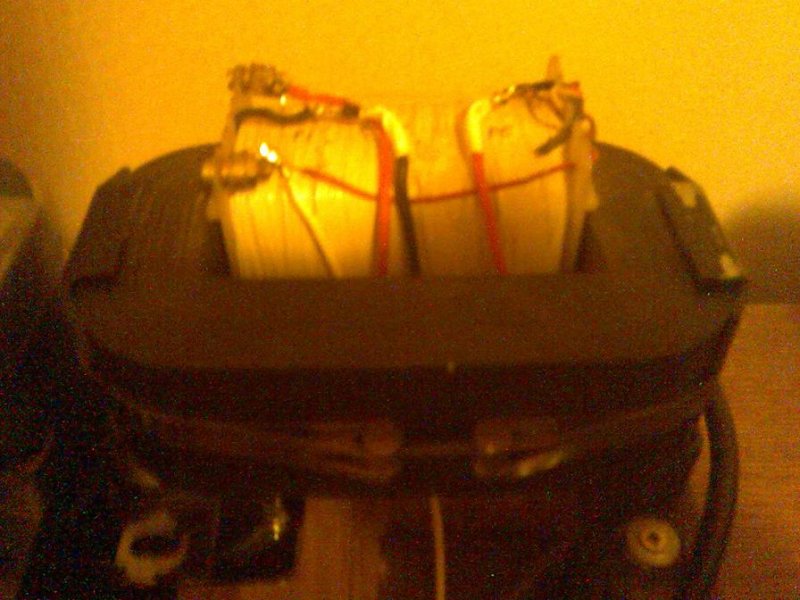 Szerintem is az SU lenne talán alakalmasabb, de tartok tőle, hogy jó sok menet kell rá (4000 körüli primer, engedménnyel 3000 menet, az már nem is olyan sok). Én SU-nál sem használok két csévét SE-hez (úgy tekerem, ahogy a képen látaszik). Sajnos az SU 75A hiába 188 Va-es, a voltonkénti menetszám magas (mert nagyon kicsi a magkeresztmetszet, és ezt nem ellensúlyozza a növelt indukcióhossz, és a nagyobb megengedett indukció sem).