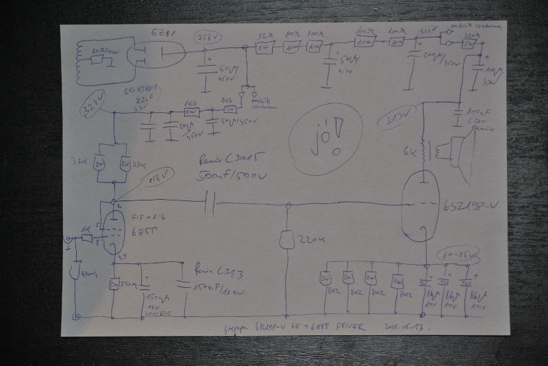 6n13sz (6H13C) ugyanez csak a fele cső egy 6sz19p A jó kapcsolás. Egyben a jóhangú kapcsolás is, és az elegendő erősítésű két fokozatból álló erősítő topológia is. Lépcsős táp DC csatolás fix biassal a katódkondik ellen lenne még amit változtatni érdemes lehet... 7V PP nél kevesebb kell a 8Ohm azaz alulterhelt (Ra ekkor nálam 12k!!!) túlvezérléshez. Majd megmérem pontosan csak most megy... A standard CD kimenet is van 7VPP illetve talán 7,3V PP is volt egy 1kHz es -1dB es mérőjel...