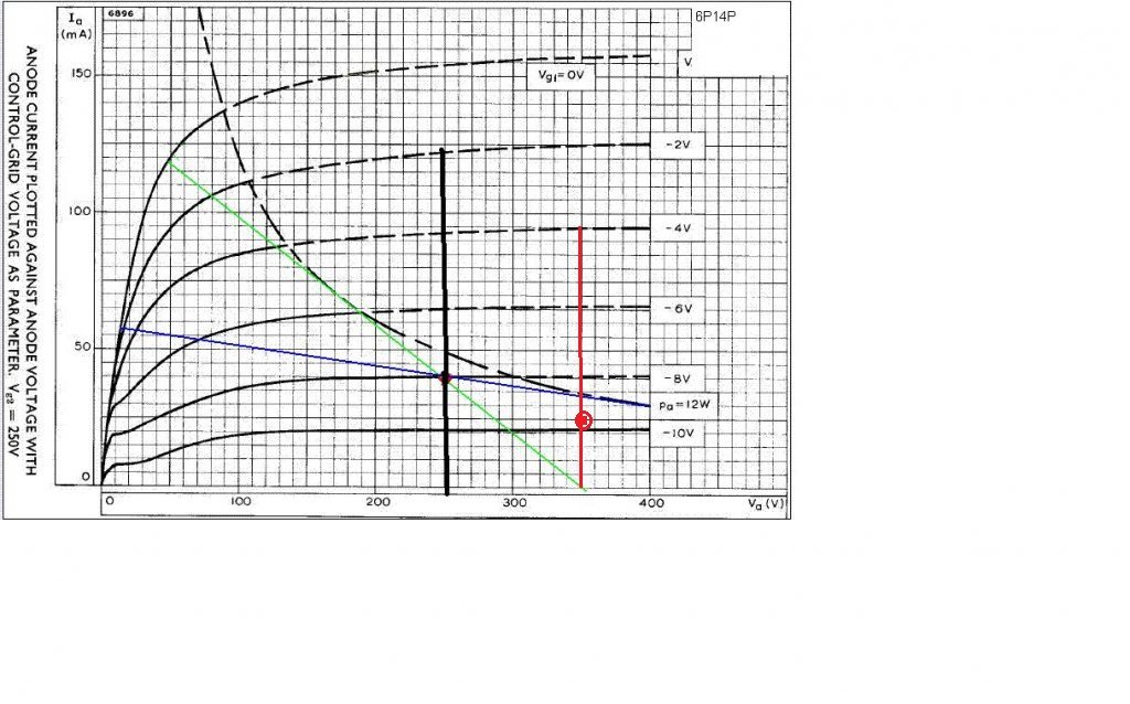 Az én csöveim a 350V mellett akkor a piros egyenesen mozoghatnak a Pa határ alatt és most 20-25mA mellett a piros pötty környékén vannak?