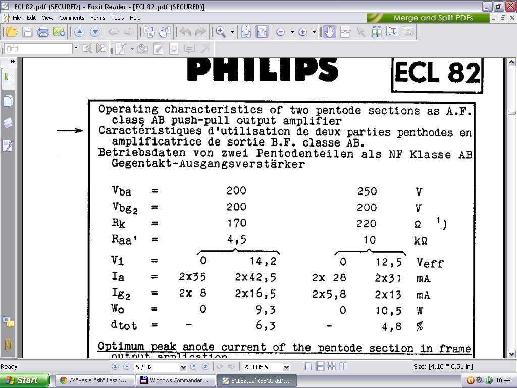 Ezt nem nagyon értem hogy ez miért AB? 0 vezérlő jelnél teljesen ki vannak nyitva a csövek. 7W max anóddissszipáció. Ez nem A osztály?