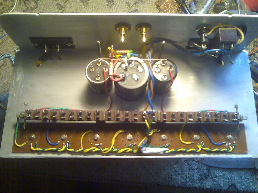 Szép kis kábeldzsungel.Jól látom,hogy a bemenet árnyékolatlanul megy az előfokcsőre?Az oldala is fából van?