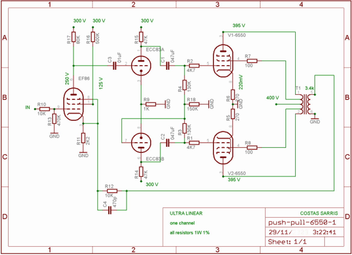 Jónapot, Sziasztok építettem egy sztereó ecl82 erősítőt ami elég hatalmasra sikeredett, és szeretném kicsit csökkenteni a méreteit, találtam egy nagyon tuti kis szereó nyáktervet csak nem igazán tudom hogy hova milyen értékű dolgok kellenének, a kép a következő: