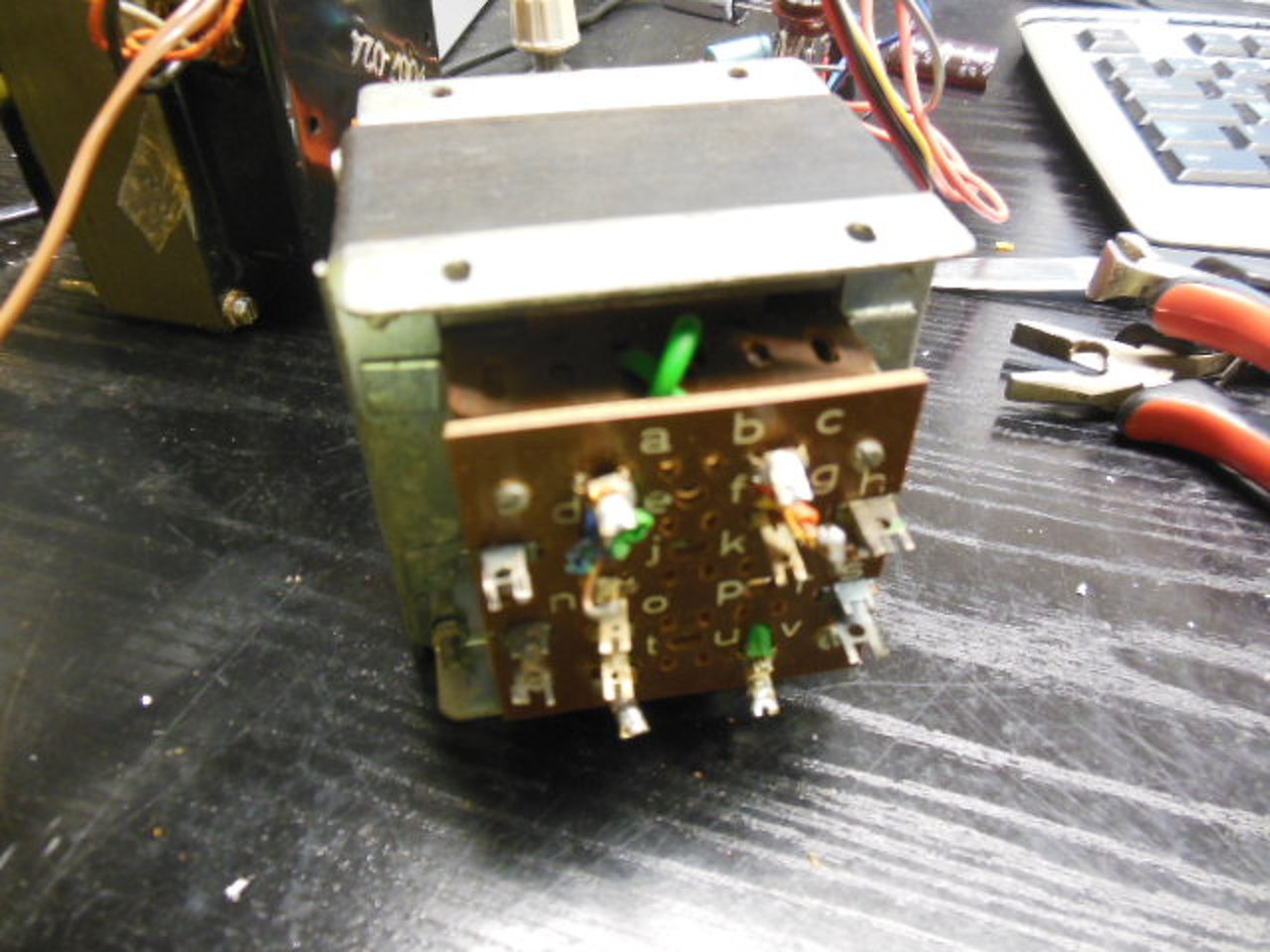 Nem mérünk "földön állva"; veszélyes lehet! (Ez csak kapacitív feszültség.) Gondoltál arra, hogy nem a rajzod szerinti végek 1-1 tekercs végei. Sorba kötve a menet irányuk is kiderül. Az egy tekercs, amely végek közt mérsz feszültséget. A rajzod szerint nem egyforma a két tekercs, tehát 3-féle impedanciájú hangszóró köthető rá. Vagy akármi, mivel a képen nem látszik légrés, használható normál trafóként is (pl. 110V-on). Az áttétel számolható a feszültségekből. Már miért ne tudnád használni? Várd meg egy ismerőjének válaszát.
