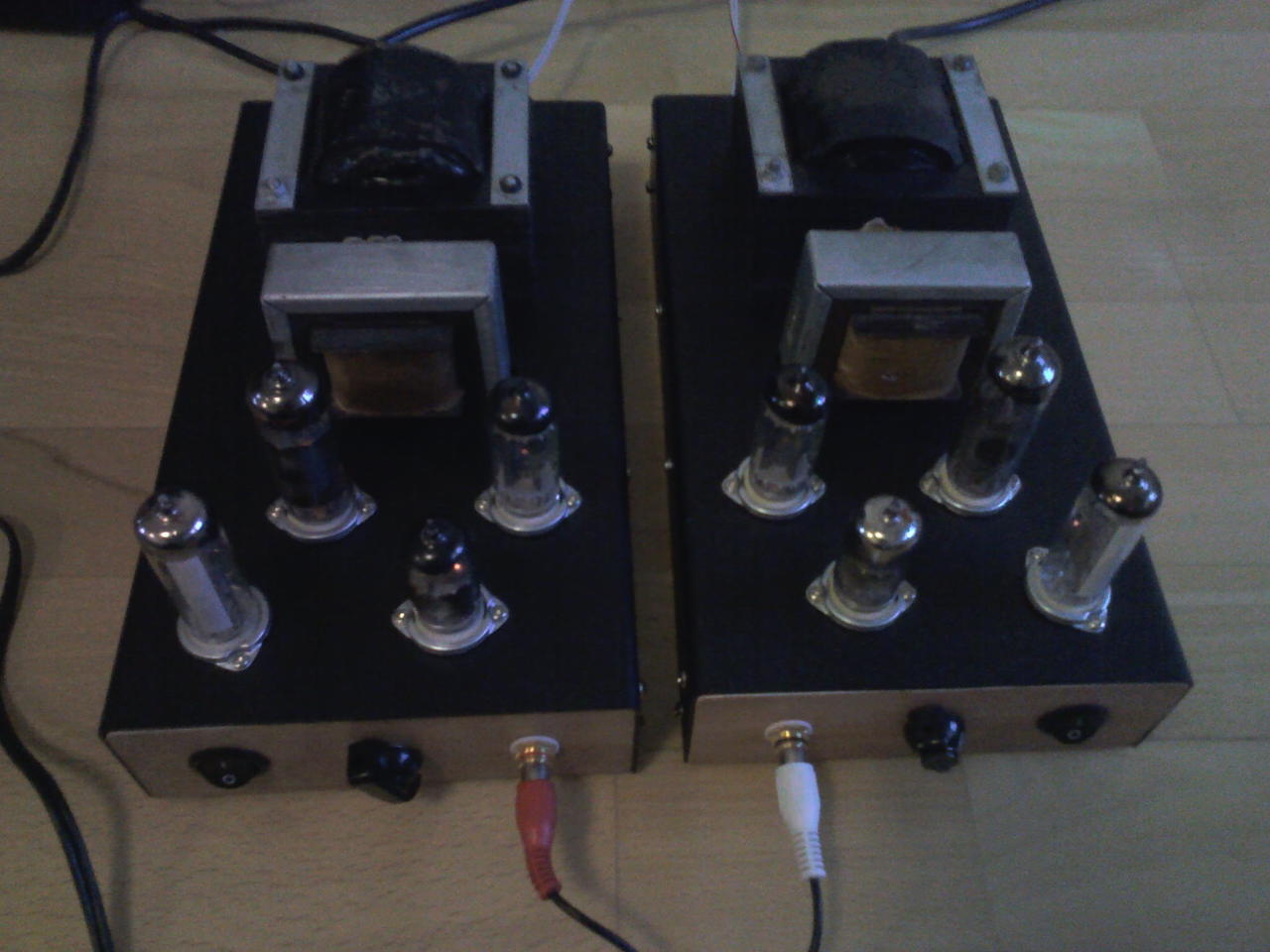 Elkészült az El84 SE. Nem zúg, nem búg, elsőre tökéletesen indult. Használt 6p14p csöveket szereztem az ebay-ről. Az egyiknél a katód ellenállás nagyon melegedett. Kicseréltem a csövet, és megszűnt a melegedés. Gondolom az kuka. Dj Hans féle kapcsolás, de Ecc85 helyett 6n1p- t használtam. Az RTÉ 2008 könyvben az El84 SE-nél azt írják, hogy helyettesíthető a két cső egymással. Még az EM84-eket kell bekötnöm, de még nem döntöttem el hogy panelre készüljön, vagy légszerelve.