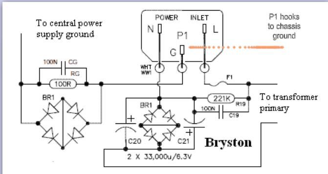 A két ellenpárhuzamos FET (szerintem) biztosítja a lehető nagyobb zárlati áram (Negatv -> Sasszi) kialakulását segít a biztit kiolvasztani, emellett növeli a lehetséges földhurok impedanciáját. A másik rajzon a Bryston cég ajánlása szinte ugyanez, csak a híd mellett ott az RC tag, ami szintén az impedancia növelés végett van. Részemről nem vitatott, mindezen, félvezetőt tartalmazó pótlások a rossz földelést hivatott kijavítani, de ha csak ez segít? Mankónak nem rossz. A Bryston rajzon van egy hálózati DC blokkoló is, nagyobb toroidoknál jól jön. A hozzászólás módosítva: Aug 26, 2018
