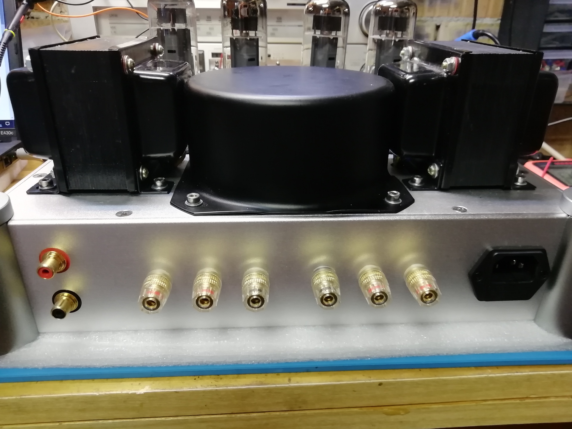 Én lehet, hogy egyelőre nem kötném be az UL vezetékeket, hanem a segédrácsokat bekötném az ellenállásokon keresztül a plusz tápra. A végcsövek foglalatai az első képen még csak ideiglenesen vannak beforrasztva gondolom.
