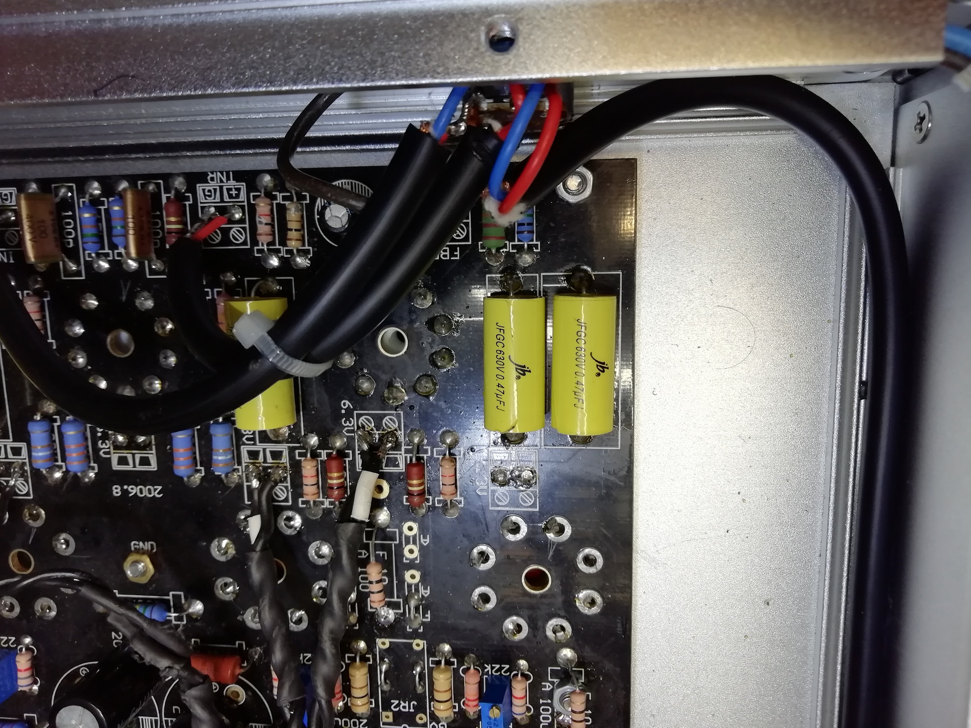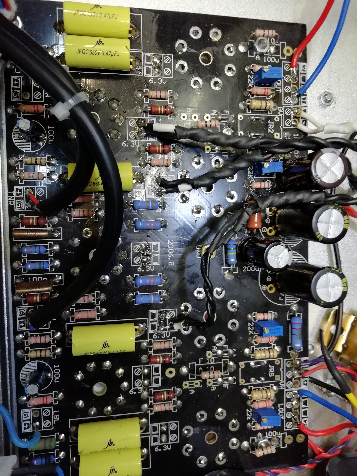 Idézet: „Sziasztok! Ami eddig történt és tegnap éjszaka volt rá időm: 1. Csak egy csatorna végcsöveit meghagyva eltávolítottam a triódákat az elejéből. Nincs jelenség. 2. Visszahelyeztem a végek elé a triódát, az elsőt viszont nem. Nincs jelenség.” Az első triódánál van a gond. Nem a triódával, a visszacsatolással. Gerjed...... Megfordítani a visszacsatolás két vezetékét. Egy próbát megér