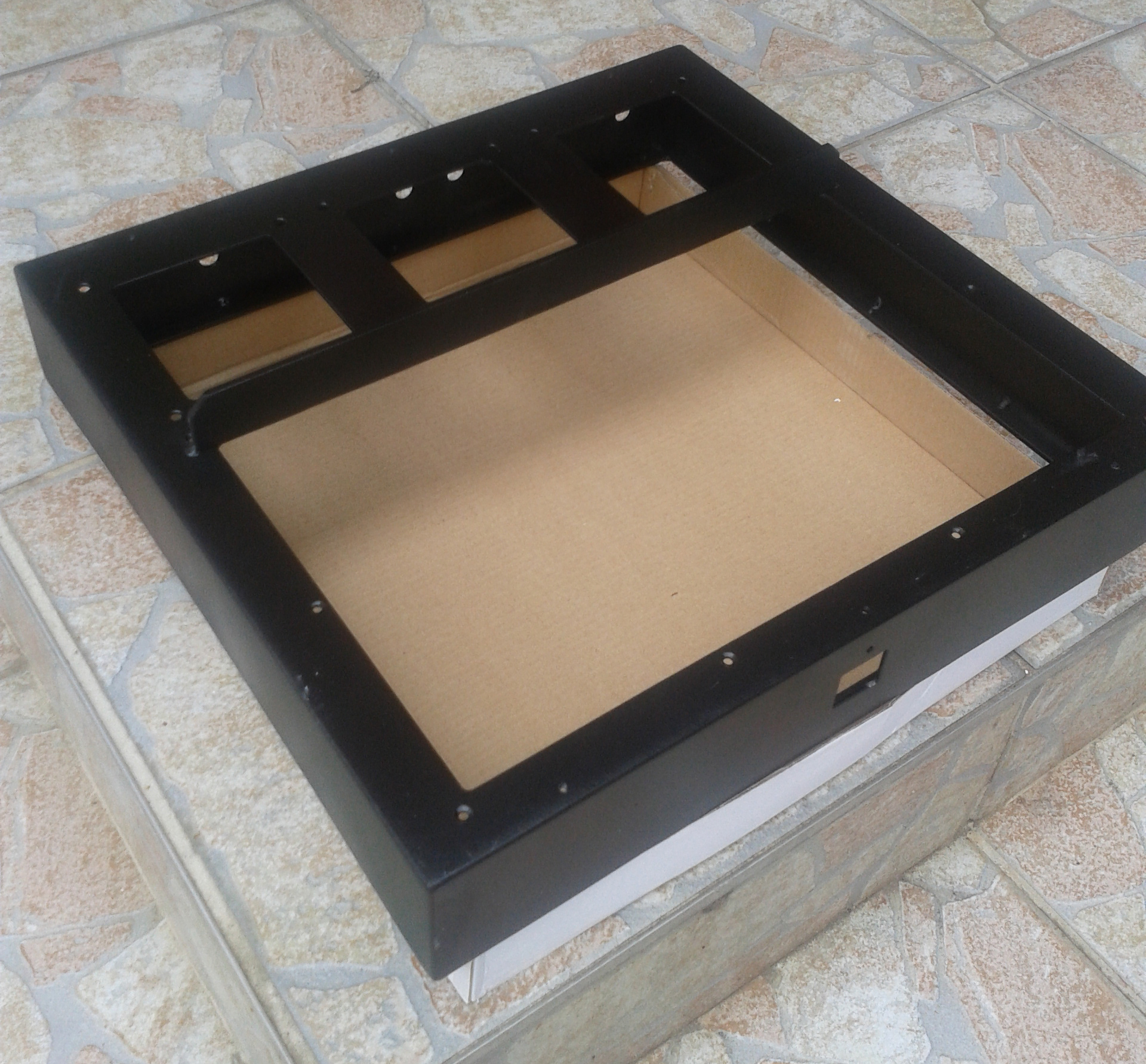 Aztán autófényező zsírtalanította, majd 2K matt feketével lefújta.
