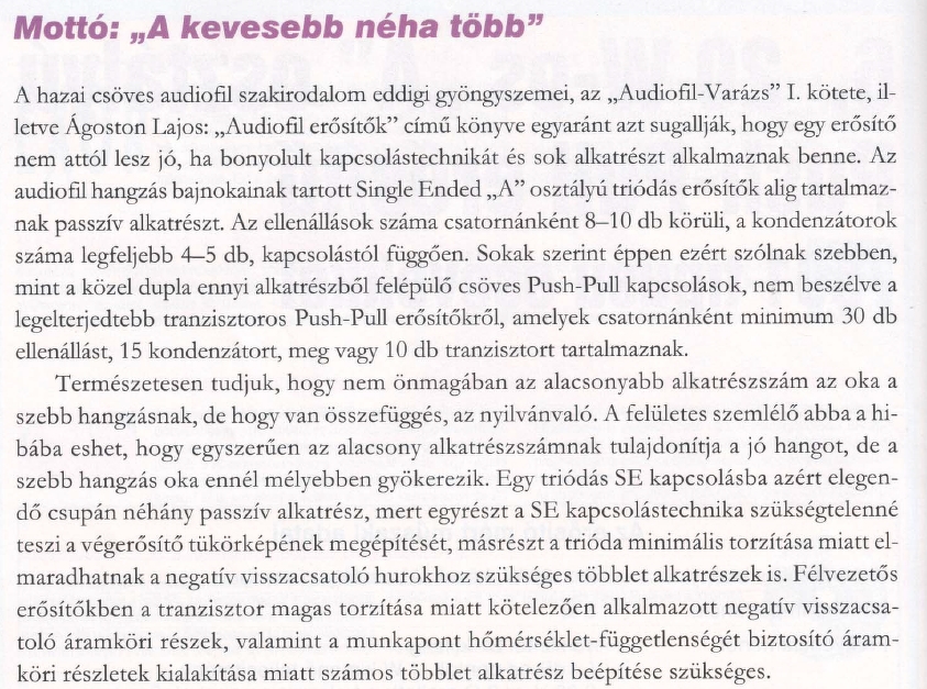 Érdemes beleolvasni az Ágoston úr egyik irományába (csatolok belőle egy kis részt), nem azt mondom hogy szentírás, de van benne valami. Ahogy abban is lehet valami, hogy egy AN Kegon monoblock párért 10 milliót el mernek kérni.