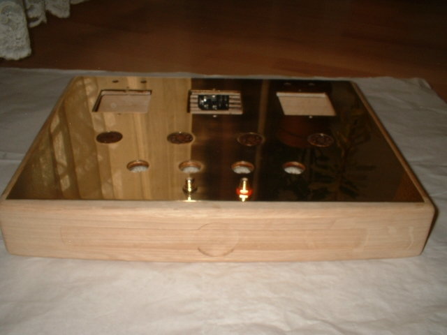Előlapba is sárgaréz, középen fa + sárgaréz potigomb, még csiszolgatni és színezni kell...