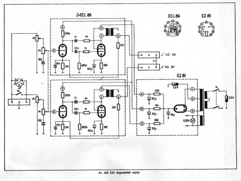 Itt egy ECL86 SE. Valamikor régen AE233 típusú erősítőként jelent meg.