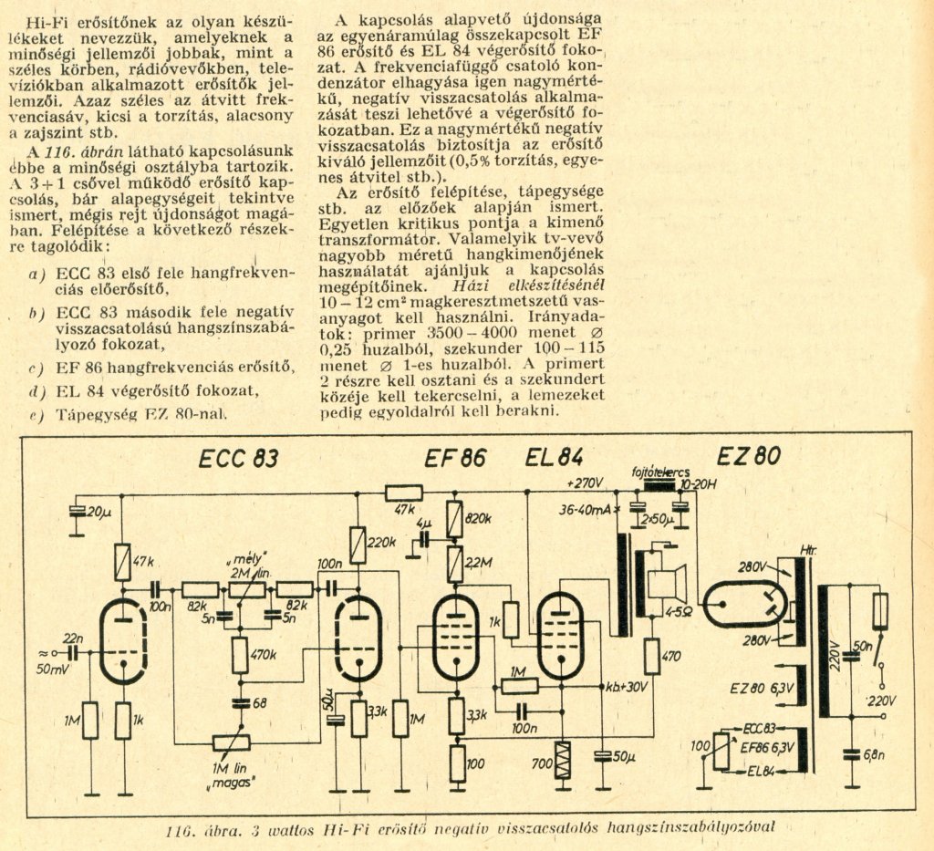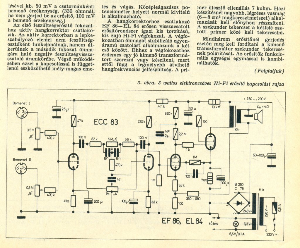 A két Rt cikk az EL84, EF86 csövekből felépített 3W-os SE erősítőről.