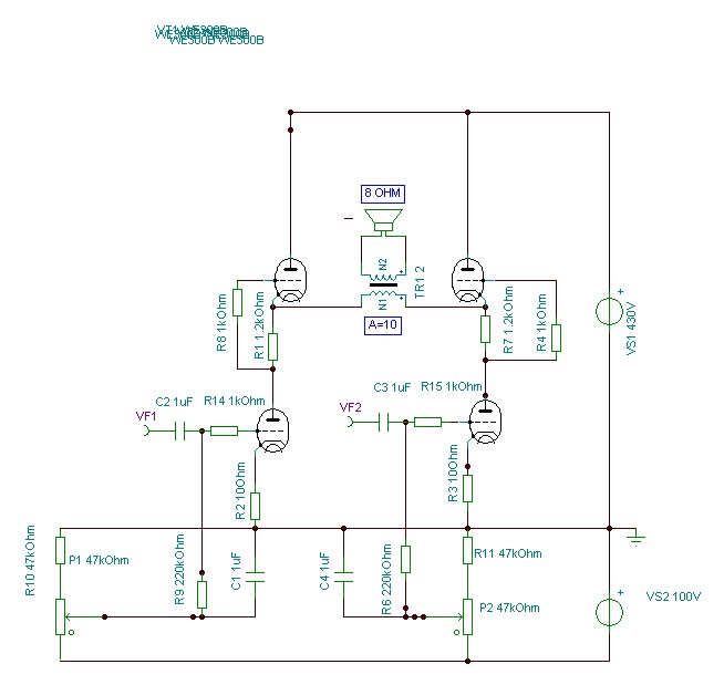 Még nem tudtam eldönteni , milyen kapcsolásban . PP 4db. csővel kb. 25W lehet , 1 pár estén 8-10W . SE 6W lehet , persze itt is párhuzamosítható több is , de válogatni kell . Gondolkodtam még SRPP bekötésben (2x4 trióda) , a kimenő is egyszerűbb lehetne .