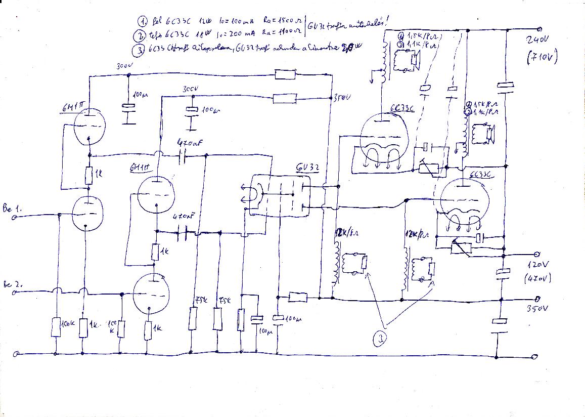 6C4C, te mit gondolsz a 6C33C meghajtásomról, jó lehet úgy ahogyan meg akarom csinálni, jófajta kimenőtrafó primerje lenne a fojtótekercs a 6C33C rácskörében ugyanúgy, mint egy rendes fojtó, csak a szekunderére kötött ellenállással hangolva (esetlegesen innen hurok nvcs.), a meghajtó fokozat anódfesze rácselőfesznyivel eltolva indulna, mint a rajzon, de a balanszírozást lehet, hogy násképpen csinálom (nem vegyes rácselőfesszel).