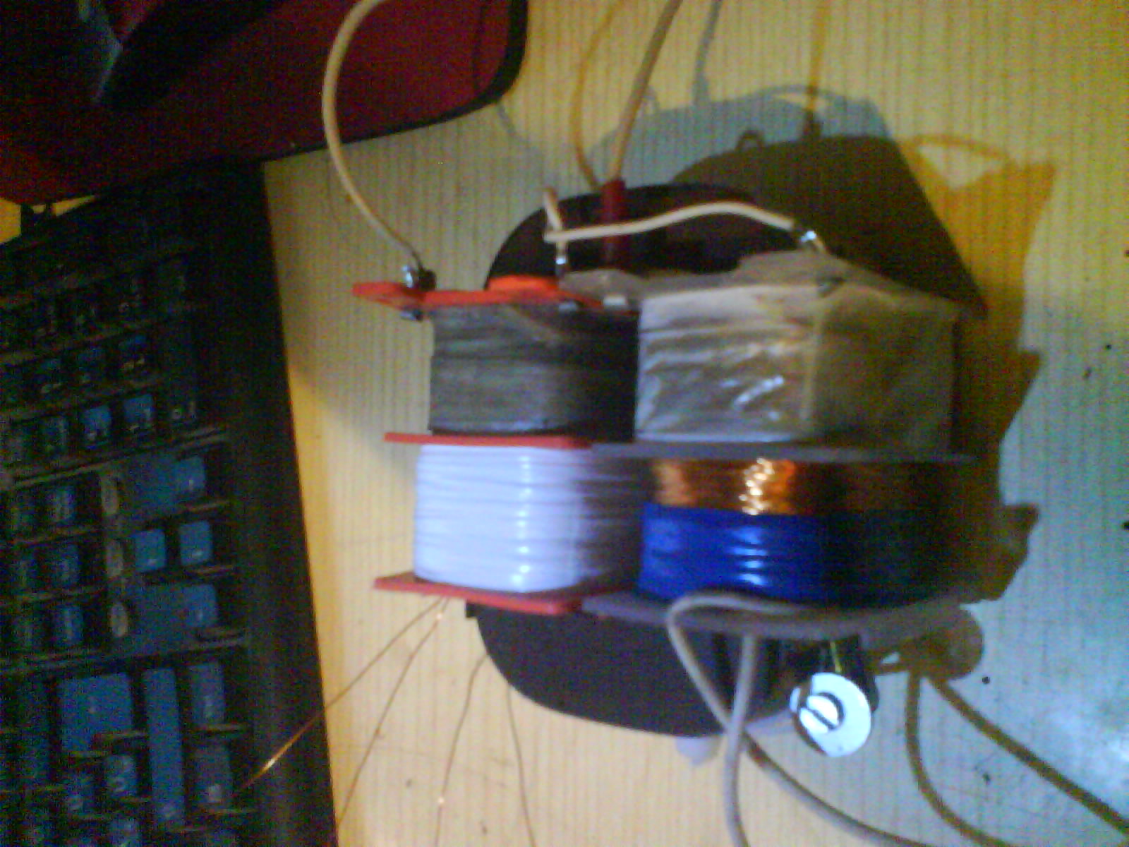 Most készültem el a sztereo PPP erősítő táptrafójának egyik oldalával. A vastagabbik rész az, amin fehér szigetelő szalag van. A másik oldalán még rajta van a PCL86-hoz tekert rész. Ez is "leugrik" mint a fűtés tekercse, és meglesz a trafó. Egy régi orosz aksitöltőből bontottam, 150W-os. Lehet, hogy kicsit nagynak tűnik, de akkor már párhuzamosan kell kötni 2-2 csövet oldalanként, hogy kihasználjam valamejest.