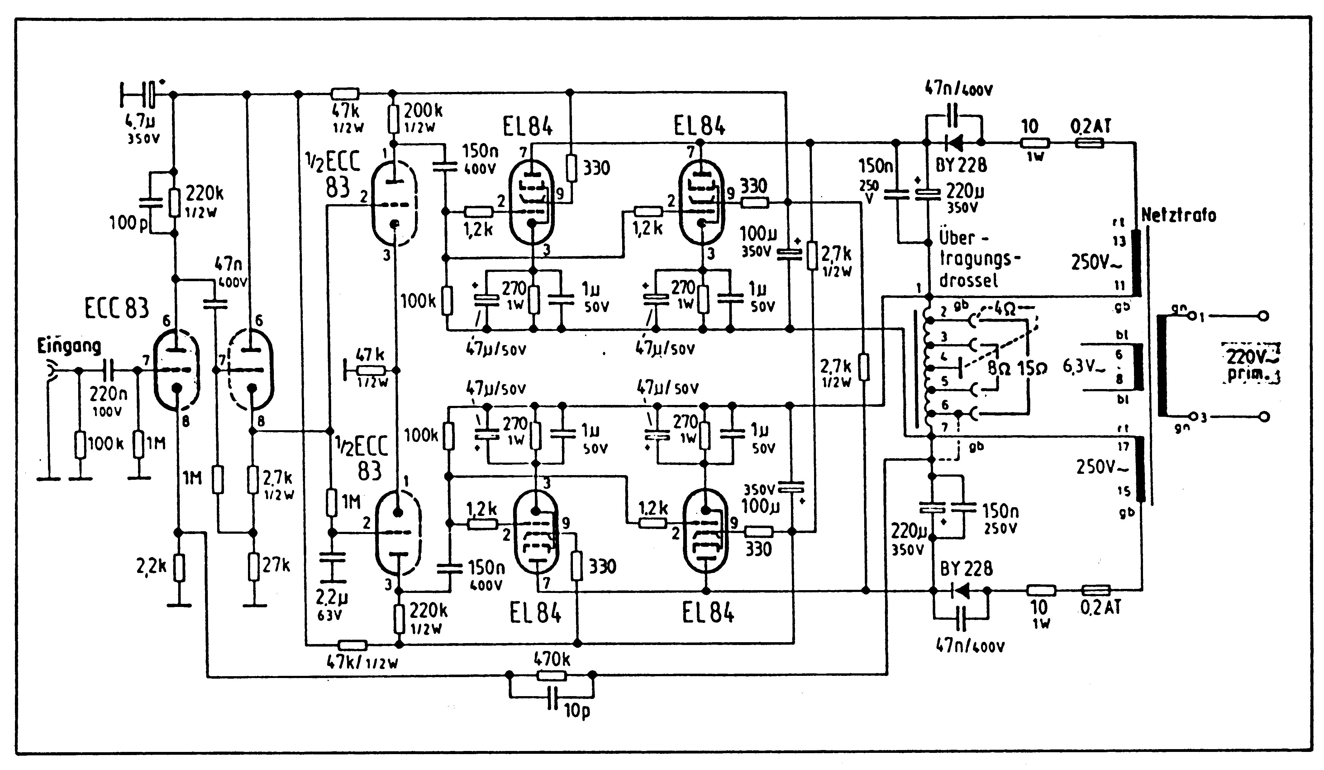 A rajz RT évkönyvből való.Én a 15W-os verziót építettem meg,de pentódának kötve a csöveket kb 25W-ot tud.