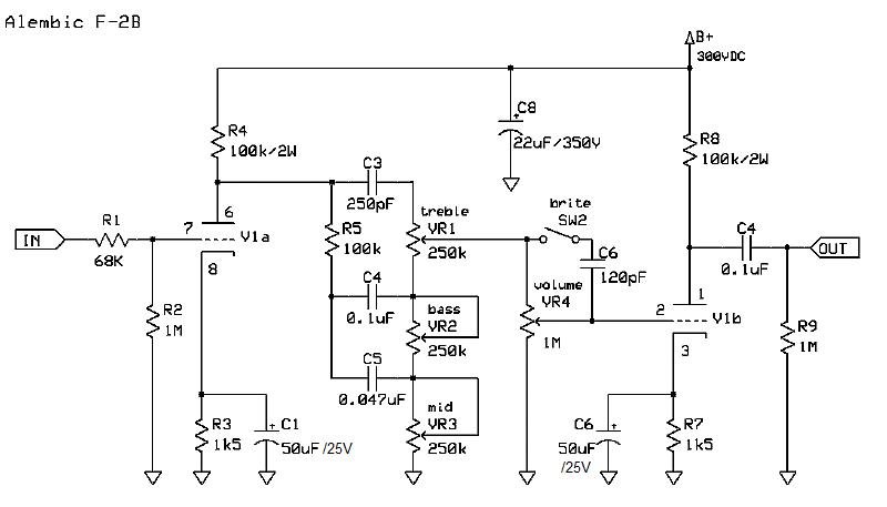 én nem így látom ! a bemeneti csatolót elhagyva ugyan megszűnik a mélyvágás, a potméter csúszkájáról a kondit leforrasztva megszűnik a "magasemelés" (bright), de a Marshall-típusú hangszínszabályozó ( ami eredetileg szintén fender : Bassman 5F6... ) még tiszta gitár hangszínre sem valami jó, nemhogy hifire.... még kevésbé szabályoz, mint az "eredeti" fender, és már alapból mélyet vág !