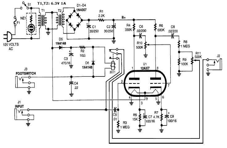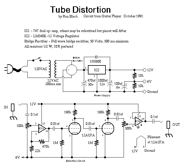 Találtam egy csöves torzítópedál rajzot! És 12V-al működne... Sajnos nem értek a csövekhez. eddig azt hittem, hogy csak 200V feletti feszültséggel működnek!