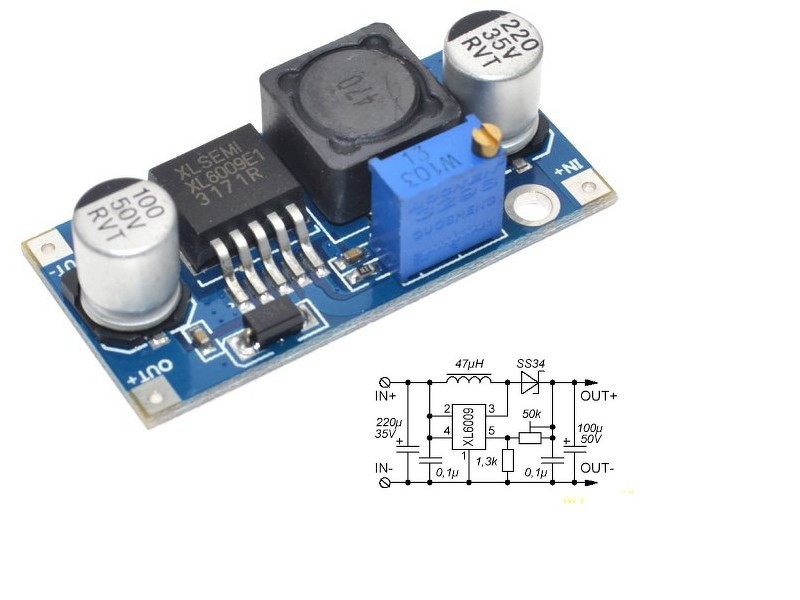 Néztem kész Step-Up Boost Converter XL6009 (LM2577) IC-vel, max. 3A.
