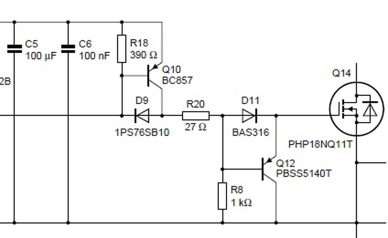 A gyorsabb gate meghajtáshoz (mármint a kikapcsoláshoz, mert a bekapcsolás szinte biztosan elég gyors) csupán 2 filléres alkatrész kell. Lásd a csatolt képen!