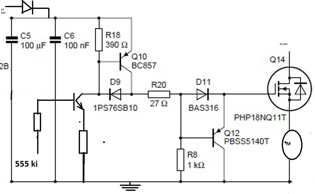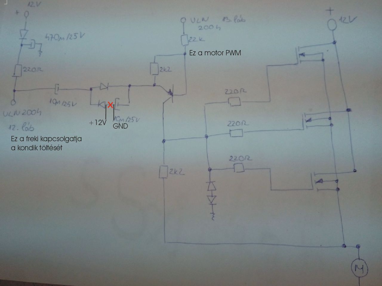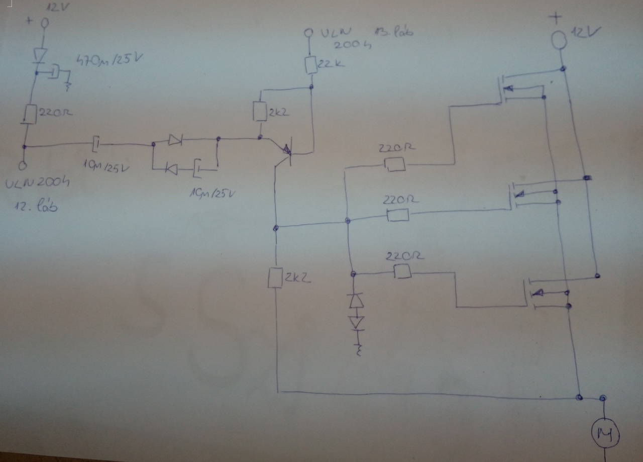 Idézet: „Beteszel még a gyors diódát a +12V felől a 100µF kondit tölteni a vezérlőbemenetet pedig egy NPN tranyóval rángatod egy soros ellenálláson keresztül.” Igy?