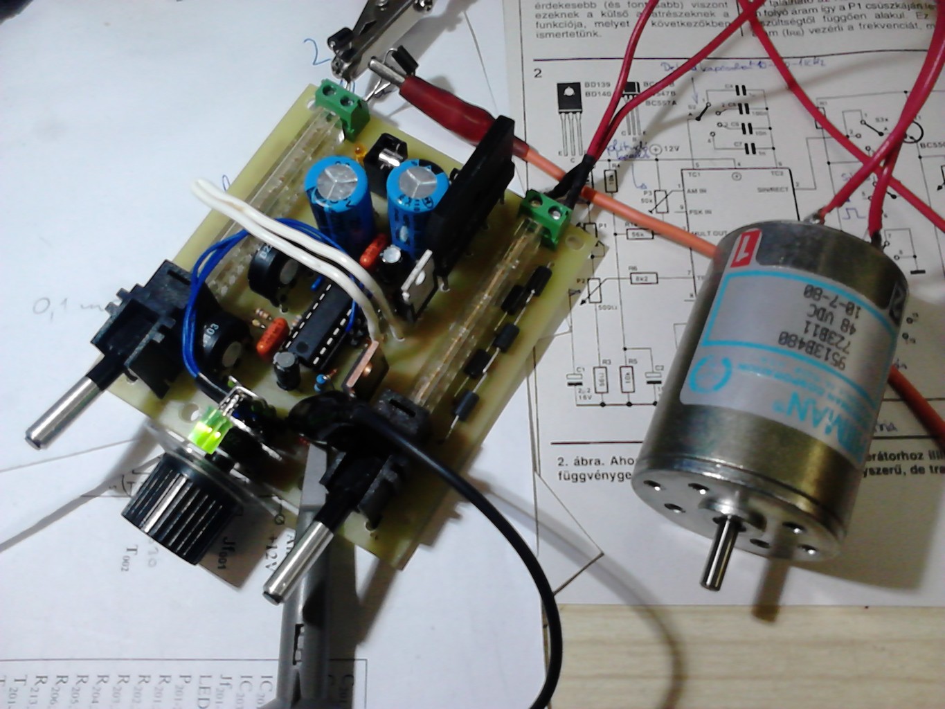 A legkisebb beállítható frekvencia ~590Hz, a legnagyobb ~5,5KHz. Nagyobb frekvencián az előzőekben említett zaj eltűnik a képről. Természetesen minél nagyobb a frekvencia, annál gyengébb a motor.