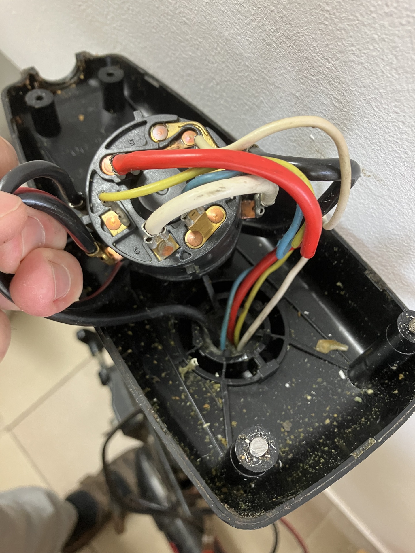 Hello! Anno én is javítottam egy amcsi csónakmotort. Igaz ezen részével nem foglalkoztam, csak a motor csapággyal és a kommutátorral. De a vezérlő elektronika a csigával szemben lent az orrkúpban volt a hűtés miatt és ki volt öntve műgyantával. Tehát a kapcsoló csak a bekapcsolást végezte, a vékony szálak a fordulat-szabályzónak szóltak. Szerintem itt is ez lesz a helyzet..