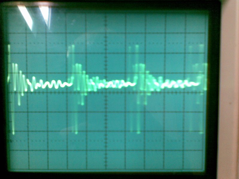 Tektronix 455.Még csak ismerkedünk egymással,de lehet hogy majd időnként rád is szükség lessz. Meg is néztem egy két jelalakot a VMK vezérlésén.(csatoltam a shöntön mért jelet) Hát ennek köze nincs a várt jelalakhoz.Az érdekessége hogy a time/div 1us állásban volt.(akkor ez valami 150KHz?? )Aztán elkezdtem variálni a komparátor ellenállásaival és egyszercsak egy gyönyörű háromszögjel lett a shöntön de túl alacsony volt a frekvencia (kb 30hz).Megpróbáltam feltornázni de csak két állapot létezik.A begerjedt és a jó de alacsony frekvenciás állapot.És most figyelj.A két állapot között úgy tudok váltani hogy közelitem a kezem a fet hűtőbordája felé és egyszercsak megjavul.Ha megfogom megint gerjed,ha elveszem a kezem megint nem jó.Pont elkell találni a távolságot.AGYRÉM. Tapasztalat hijján meg kell kérdeznem,hova varjam a gombot?