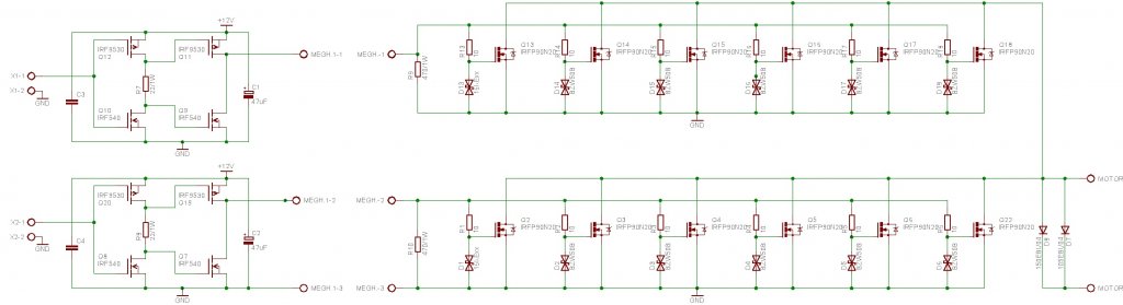 A főáramkör véleményem szerint megvan! 12db FET! Ezeknek a meghajtása zavaros, számomra mivel mindenki mást csinált más vált be neki.