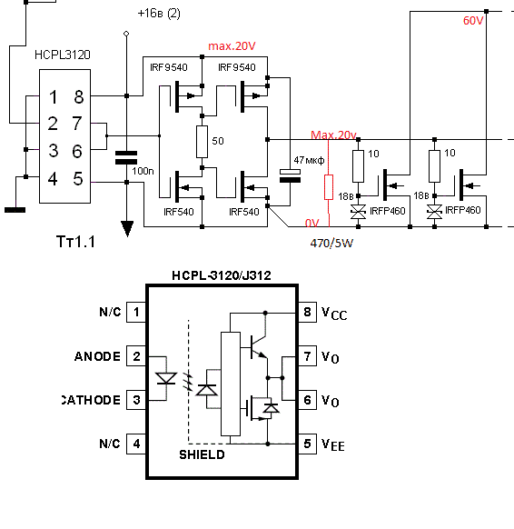 Írtam feljebb, hogy nem volt az eagle-mba HCPL3120 alkatrész. Ez tulajdonképpen egy opto! Ezzel gondoltam a mostani 4FET meghajtását. Mellékletben csatolom a hogy honnan az ötlet.