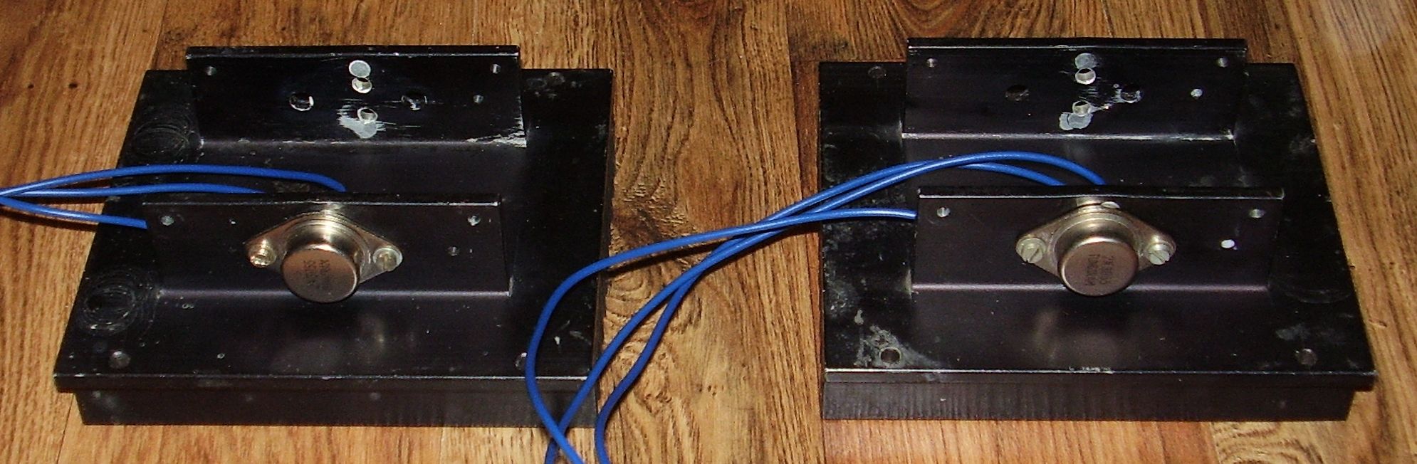 Nos a kérdésedre azt tudom válszolni, hogy olvasgattam Rod Elliott publikálását, és ő azt írta, hogy ez az erősítő elég toleráns a feszültségértékre kb. 20V-tól nyugodtan lehet használni. Azonban azt is írta, hogy ő 40V-nál nagyobb tápfeszültséget nem ajánl a jelentős hő disszipációra tekintve. Ha jól belegondolunk ez teljesen reális érv. Feltettem egy teljesítménytáblázatot, ott is látszik, hogy mekkora a "hőteljesíménye". Azonban, ha az áramerősségből lejjebb veszel (1-1,3A) ez a probléma orvosolható. Elméleti gátja nincs annak, hogy 47V körüli tápról üzemeld, de akkor készűlj fel, hogy a nagyonnál nagyobbat fog fűteni! (főleg ha 1,7A-ra állítod az áramot.) Mérlegelned kell, ha meg tudod oldani a hűtést megépítheted feszstabilizátor nélkül is. Ha nem tudod megoldani, akkor két lehetőséged van. Vagy lejjebb veszel az áramból ez a legesgyszerűbb megoldás, vagy megépíted a feszstabilizátort, ami sokkal macerásabb. A trafód hány amperos? Egyébként az enyém is 42V-ról megy. Jut eszembe van még egy megoldás amit ilynkor szoktak alkalmazni. A képen láthatod. A végtranyókkal párhuzamosan bekötnek még egyet-egyet. Így jobban eloszlik a teljesítmény. Nem fognak annyira fűteni a tranzisztorok, bár a hőt egyenként így is leadják. Akkor hogy is van ez? Többiek?