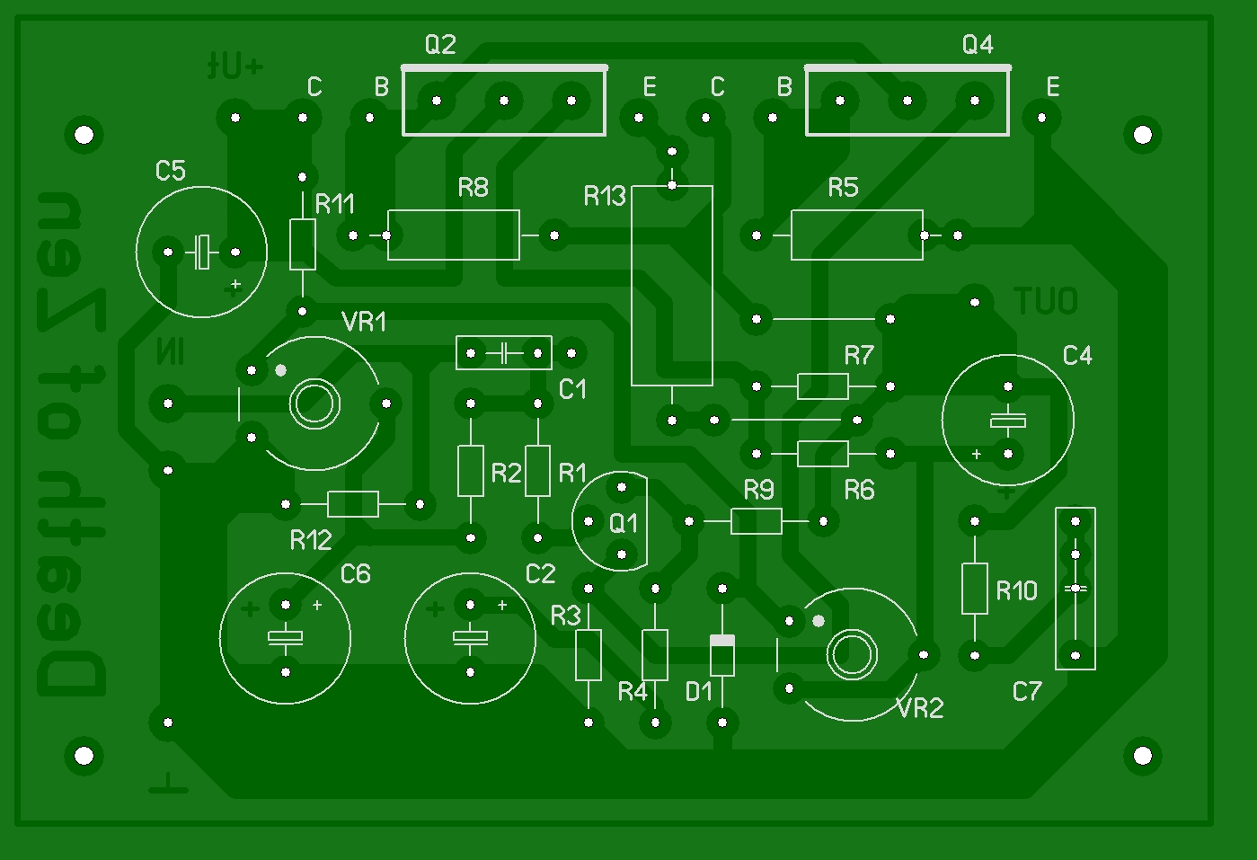 Az előző általam küldött layout-ba nincs benne a 'D1' zener dióda, véletlenül rosszat küldtem el. Az erősítő a dióda nélkül is tökéletesen működik, ez csak finomhangolás. A mostani fájl már tartalmazza a diódát. Elnézést a 'rossz' layout-ért.