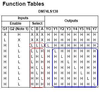 Az igazságtáblázat szerint az Y0-ás kimenetet nem használhatod, a bemenetek a rajzon fordítva vannak, mert nem bináris 1-gyel kezdesz, a kimeneteket pedig negálni kell - akkor OK.