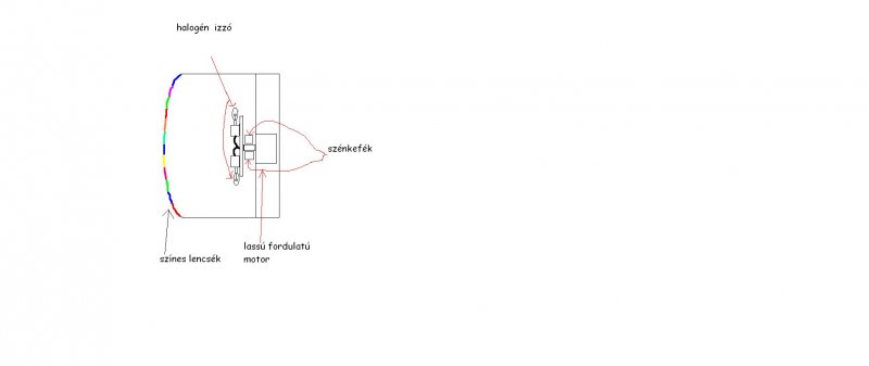 A rajzon a motor tengelyénél a két szénkefe segítségével jut el az áram az izzókhoz mert ugye ezek forognak és a kábel felcsavarodna