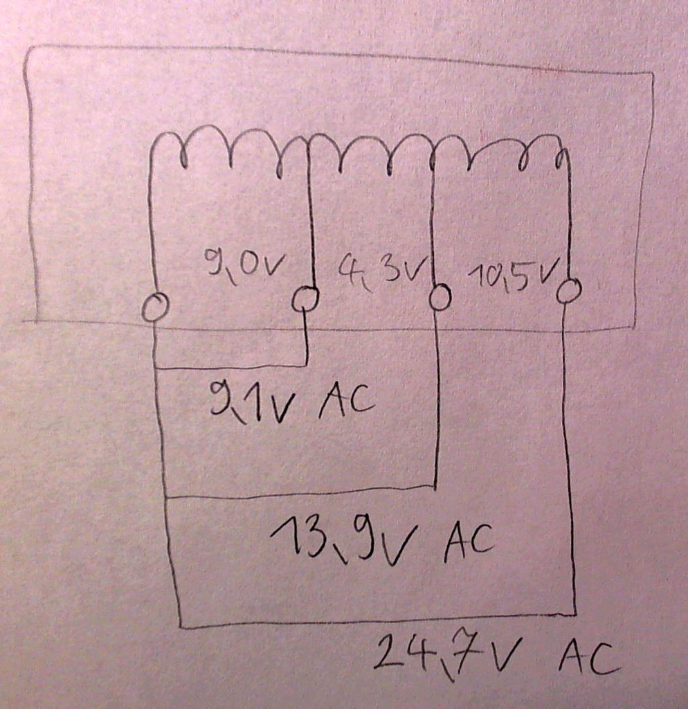 Még egy kérdésem lenne. Van egy régi ismeretlen teljesítményű trafóm (kb. 75VA-lehet). Négy kimenete van. A csatolt képen látszik, hogy melyiken mekkora AC feszültséget mértem. Az említett forrasztó állomáshoz jó lenne ez a trafó? A 24V AC bemenetre kötném a trafó 24,7V-os kimenetét, a 12V-os AC bemenetre pedig a 13,9V-os kimenetét. A hozzá ajánlott 48W-os Solomon pákát használnám.