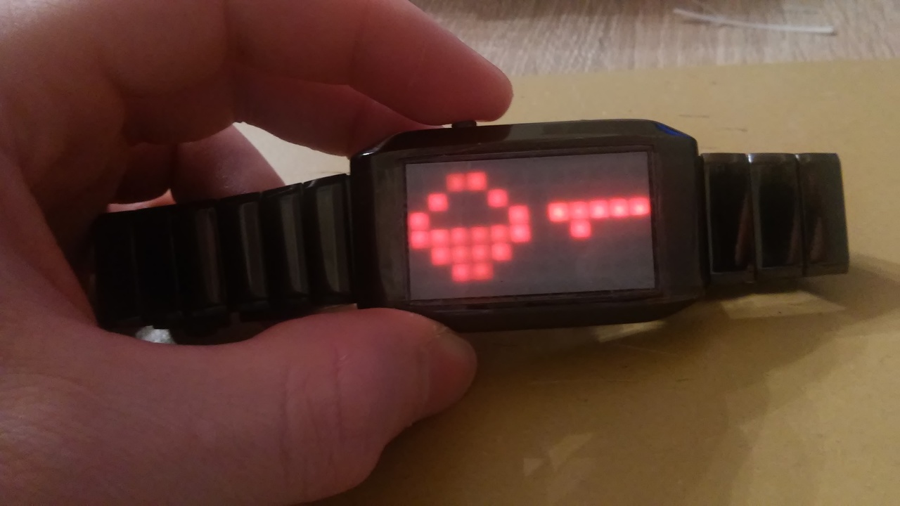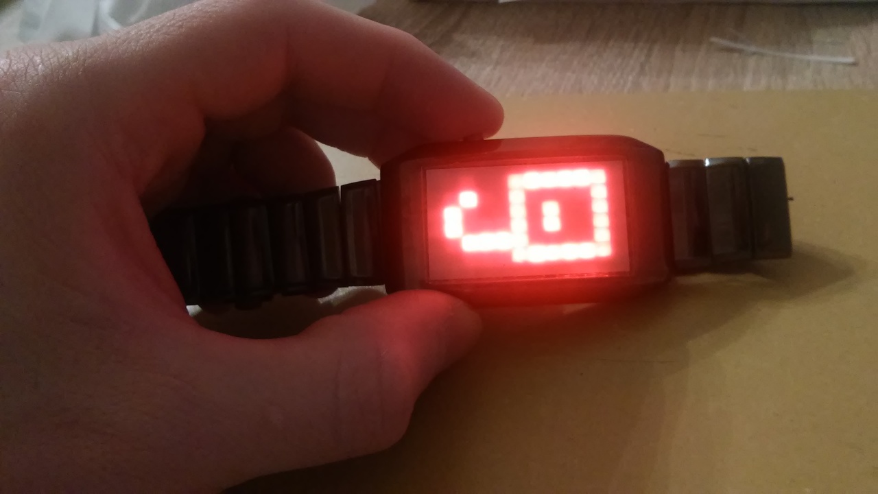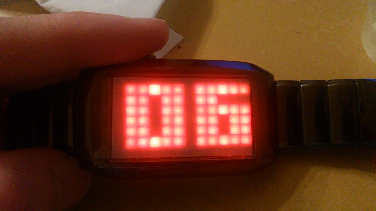 Itt van pár kép az órámról. Különleges menüpont lett benne a billentyűzár, mivel ha nem karon van hordva az óra, hanem mondjuk táskában, akkor könnyen benyomódhat a gombja. Kellett hozzá "rács" a LED-ek elé, ezt a 3D nyomtatós topicban egy kedves srác elkészítette. Nélküle csak világító pöttyök látszanak. A rácsok között kb. 0.5mm vastag az elválasztás, és szinte alig látszik.