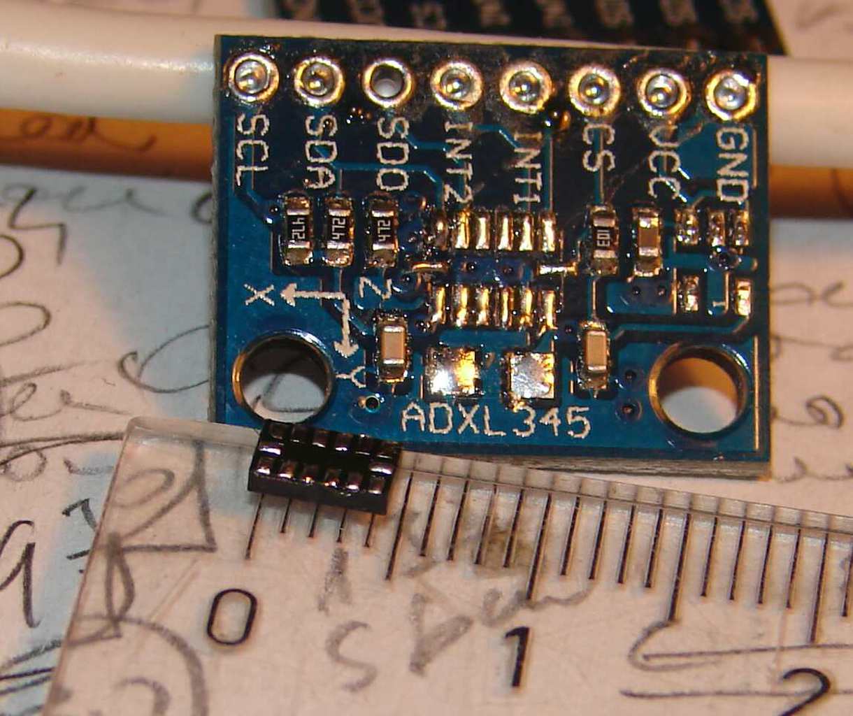 Még novemberben kitaláltam, hogy az ebay-ről rendelek órát, amit átalakíthatok kedvem szerint, mint Kovidivi. Sikerült is a melléklet szerintit megrendelni, mintegy 533 Ft értékben. Mikor megérkezett, akkor leméregettem a belső méreteit, amik egészen jónak tűntek. (38x27x7mm). Egyelőre csak egy LED-es bináris órát terveztem bele. Azért, hogy ne legyen nagyon egyszerű, kieszeltem, hogy gyorsulásmérőt is rejtek el benne. Azt szeretném elérni, hogy amikor magam felé fordítom az órát, akkor mutassa meg az időt, majd menjen vissza aludni. A problémát az jelentette, hogy ezek a gyorsulásmérő jószágot nagyon picik, de sikerült találni olyat, melyről azt gondoltam, hobbista körülmények között is boldogulni fogok vele. A kiszemelt áldozat az ADXL345 volt, melyet szintén az ebayről rendeltem, mindjárt többet is, gondolva az elrontott forrasztásra. (14 lábú LGA tokos az ADXL, mérete: 5x3x1mm) Ja, az óra karácsonyi ajándék lett volna, de nov. 13-tól jan 8-ig tartott a szállítás, míg múlt pénteken megérkezett. Az azóta eltelt időszakban tesztelgettem, - mivel nyákra építve rendeltem - így egy LCD-vel rendelkező próbanyákon sikerült próbálgatni a hozzá írogatott könyvtárat. Ez egy nem túl bonyolult eszköz, de így is sok érdekes funkciója van, pl. 3 tengelyes gyorsulás mérés, 2g,4g,8g,16g méréshatár, 10-13 bit felbontás, energia takarékos üzemmód, az egy és két koppantás felismerése, két INT kimenet, mely programozható mely eseményre adjon ki H, vagy L szintet, stb. Ma vettem a bátorságot és beforrasztottam, és sikerült működésre bírni. Az óra tokjába tervezett nyákon helyet kapott egy ATMEGA328, az ADXL345, egy órakvarc, a 13 db 0805-ös SMD LED, 2 db mikro nyomógomb, 2032-es elemről tervezem a működést. A uC RX,TX lábai ki vannak vezetve, hogy a fejlesztés folyamán a PC-ről tudjam lekérdezgetni az állapotokat, illetve, hogy magától is küldjön adatokat.