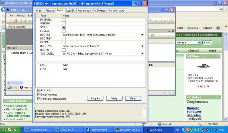 Mivel többen is kérték, ezért felteszem a labortáp fuse bit beállítását AVR stuidóval való égetéshez: