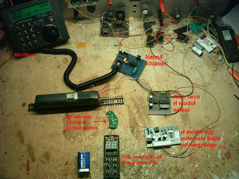 Kinnt tul meleg volt így hát oszzeraktam a vezetéknélkuli kézivezérlomet. Elsore beindult, a hatotávolság antenna nélkul 10m. Amit tud: 433,92Mhz A vevo 8 kézivezérlot tud kezelni egyszerre, 1 címet vesz el az Xpressneten Az ado: Vonatcím választás Sebesség + - irányváltás, stop F0,F1-F4 eggy egyszeru menu áramfelvétel 9,5mA, adáskor cca 20mA. 7,2V os 850mAh NiMH akksikrol fog uzemelni. TTJozsi