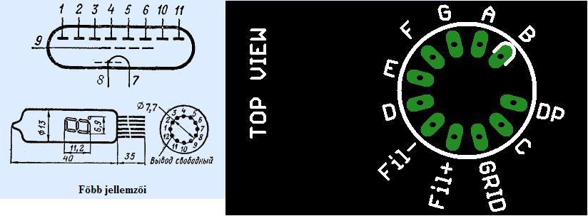 IV-6: 1-b,2-a,3-g,4-f,5-e,6-d,7-h1,8-h2,9-G,10-c,11-dp,12-nc IV-11:1-h1,2-G,3-c,4-dp,5-b,6-a,7-g,8-f,9-e,10-d,11-h2,12-nc (short pin) IV-12:1-e,2-h1,3-h2,4-G,5-d,6-c,7-b,8-a,9-g,10-f Ha ezek a jelölések jók, akkor a belinkelt ábrán nem jók a jelölések..Kellenének a lábkiosztások pontos megnevezései. Nem akarom az alkatrészeket hibás jelzéssel ellátni.(vagy az orosz kiosztásokat használom).Az biztos jó.